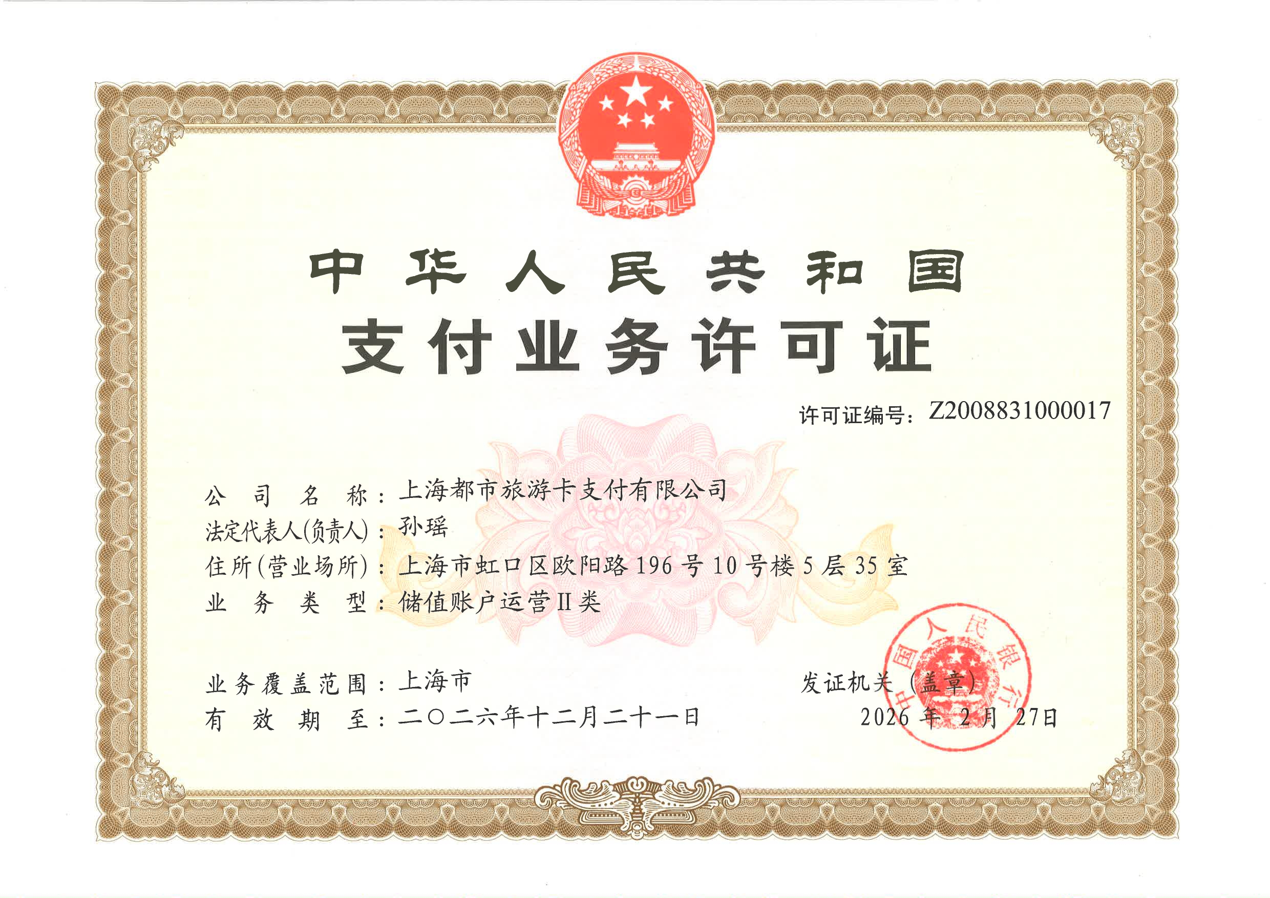 上海都市旅游卡支付有限公司于2009年5月11日正式成立,注册资本金人民币壹亿零拾万元。主要从事上海都市旅游卡的制作、发行、结算服务和市场推广工作。公司于2011年12月22日获得中国人民银行颁发的《支付业务许可证》。